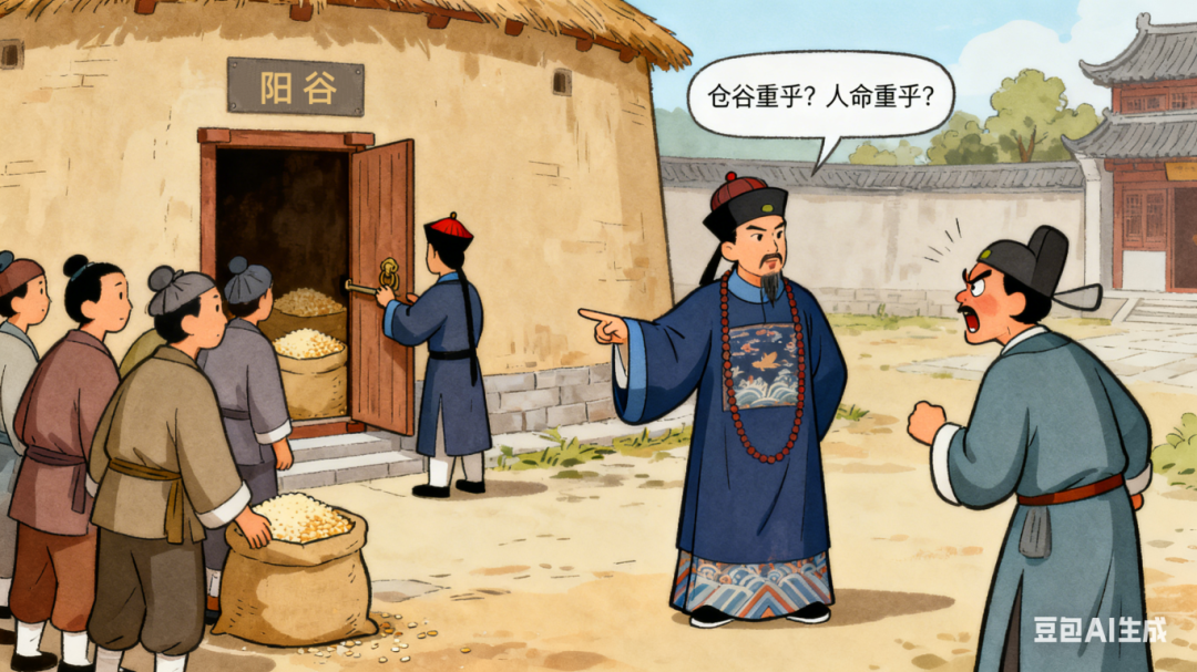康熙四十二年(1703年),张伯行被任命在山东济宁为官。当时正值饥荒,民不聊生。救人心切的张伯行便拿出自己的钱和粮食赈灾,并命人缝制棉衣,让百姓免于饥寒。此后,张伯行被派往汶上、阳谷二县赈灾。在情况危急、饿殍遍野的情形下,他一到任,便开仓放粮两万两千六百余石,救民于水火。山东布政使因他未经请示擅自动用国家谷仓,准备上奏将其弹劾,却被张伯行一句“仓谷重乎?人命重乎?”问得哑口无言,布政使方才作罢。他还积极兴修水利,治理黄河、淮河泛滥问题,组织百姓开垦荒地,提高粮食产量。