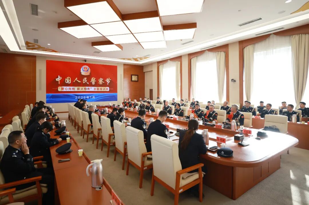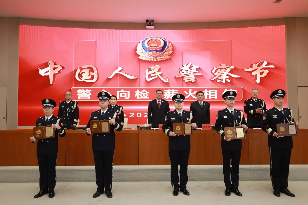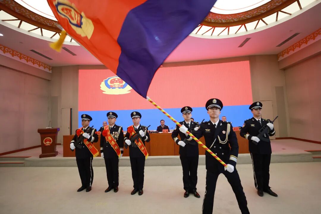 交接警旗。一面警旗,一身警服,一世荣光。新警从老警手中郑重地接过警旗,传承着司法警察的责任与担当。荣退代表结合自身经历发表感言,激励青年干警勤学善思、锤炼作风、增强本领,接续使命担当。新警代表表态:将传承警队的优良传统和务实作风,以笃行实干彰显职责担当,以奋进之姿展现司法警察新作为。
