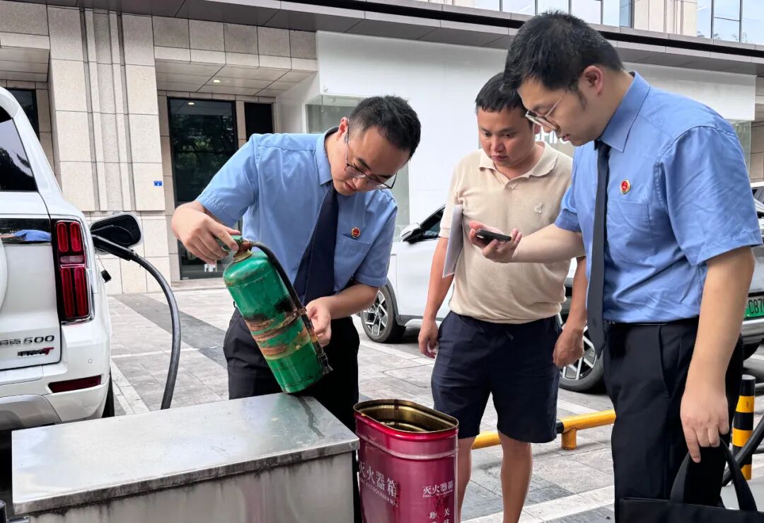 今年3月,四川省成都市检察机关检察干警排查充电站消防设施配备情况。
