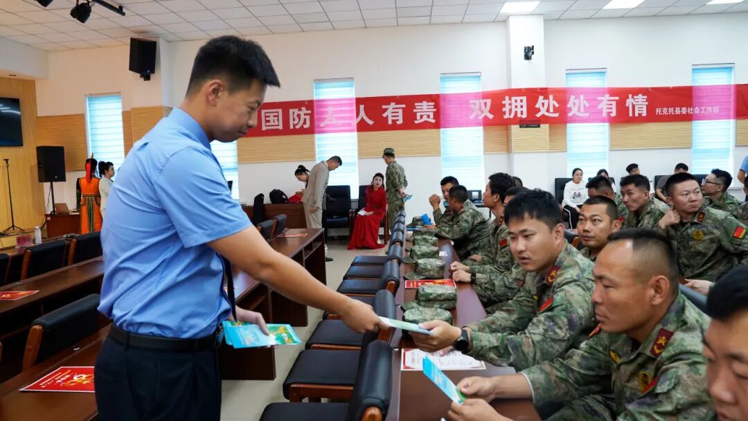上午,托克托县检察院的检察人员带着对子弟兵的崇高敬意,前往武警呼和浩特支队某中队开展宣传慰问活动。军营内,官兵们精神抖擞、斗志昂扬,浓厚的军旅氛围让检察人员深受感染。活动中,检察人员结合部队官兵的实际需求,聚焦他们日常关心的婚姻家庭矛盾化解、财产纠纷处理、军人军属合法权益保障、反诈防骗技巧、个人信息安全保护等高频法律“痛点”,主动化身“法律咨询员”,通过一对一交流的形式,搭建起军民法治沟通的桥梁。