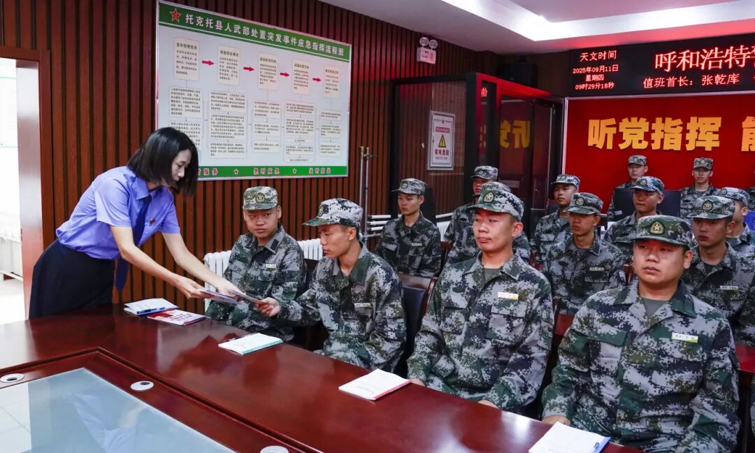 正值新兵入伍关键阶段,为切实保障部队官兵的合法权益,9月11日,托克托县检察院检察人员前往县武装部,开展普法活动专题讲座。此次活动以《民法典》为核心,聚焦军人权益相关法律知识,旨在帮助官兵掌握维护自身权益的法律方法,为官兵安心服役筑牢法治保障。