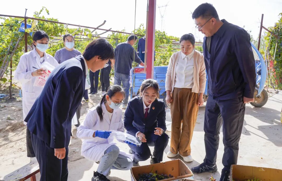 秋风送爽,瓜果飘香,正值县域内葡萄集中上市、采摘游火热的时节。针对采摘园游客可直接采摘、即时食用的特点,托克托县检察院联合县农牧局深入葡萄采摘园开展实地调研,详细了解葡萄种植、生产、销售各环节,并与相关负责人就“托县葡萄”品牌建设和地理标志培育等进行了深入交流。与此同时,检察人员还向种植户普及《农产品质量安全法》等相关法律法规,引导种植户规范生产经营行为,从源头筑牢农产品质量安全防线。