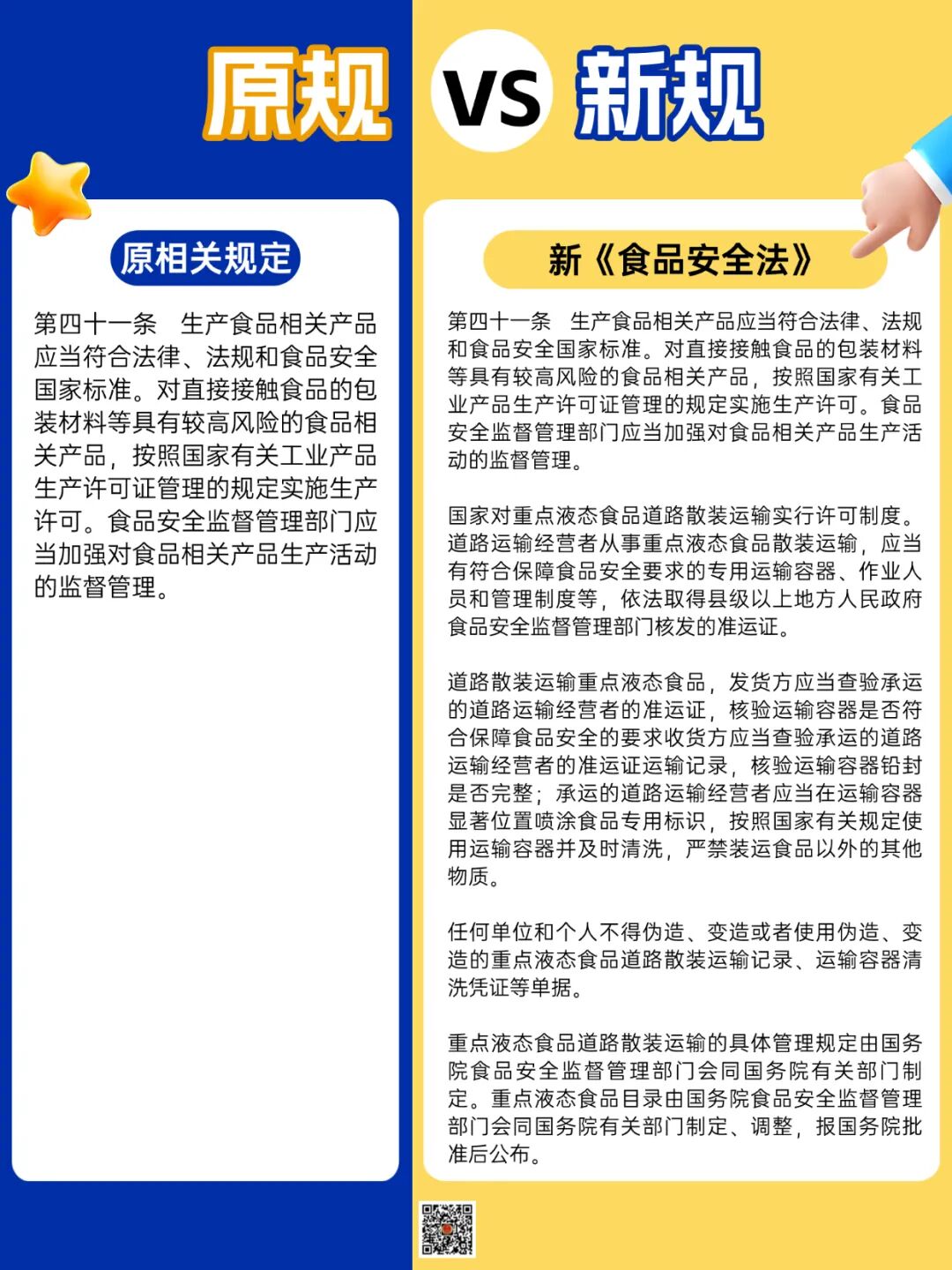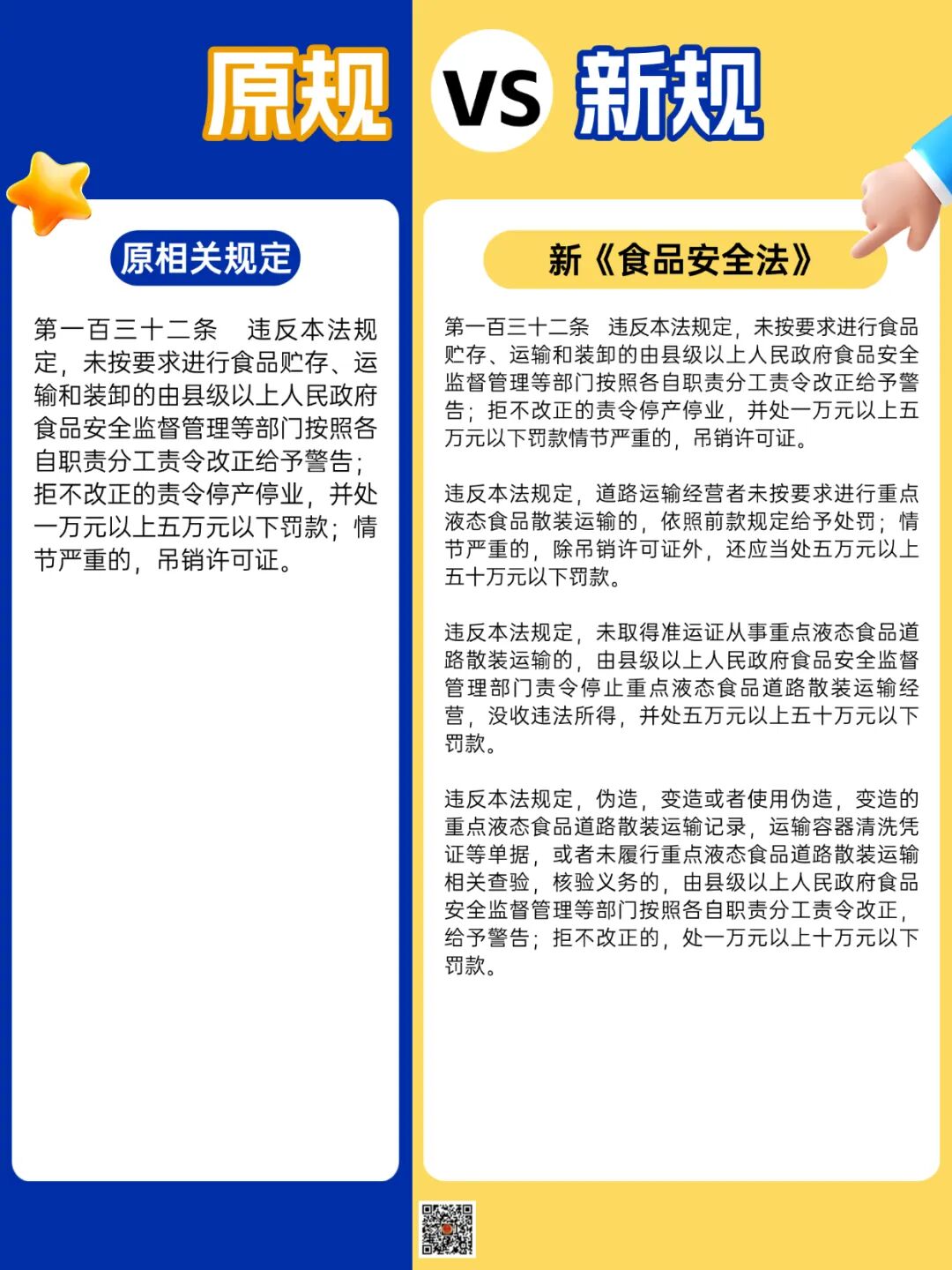 民以食为天,食以安为先!2025年12月1日起,新修订的《中华人民共和国食品安全法》正式生效!此次修法聚焦液态食品运输安全、婴幼儿配方液态乳品质保障两大核心问题,用更严格的监管、更明确的责任、更严厉的处罚,为大家的“舌尖安全”筑牢法治防线。